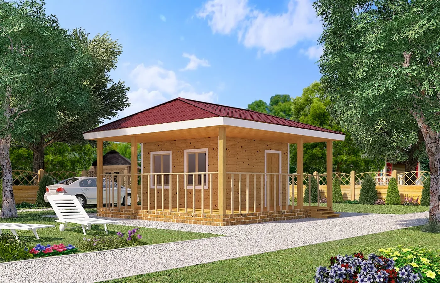Бытовка для дачи в стиле хай-тек 4,8х6 с верандой4,8х628.8ДВП-Оргалит: