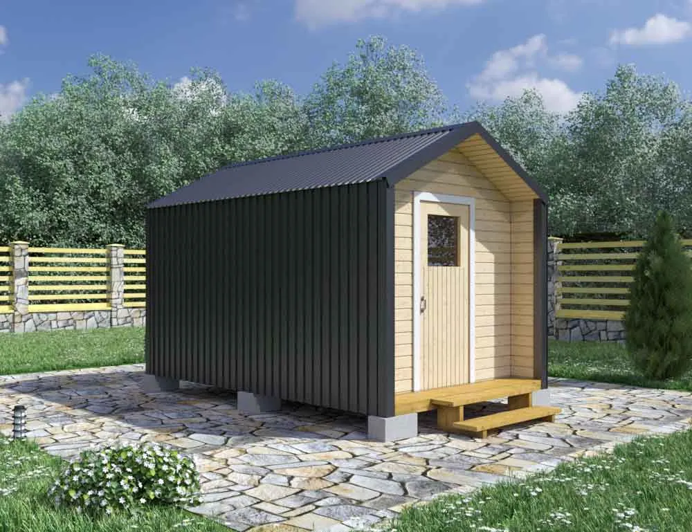 Бытовка для дачи в стиле хай-тек с цветным профлистом 4х2.44х2,49,6ДВП-Оргалит: