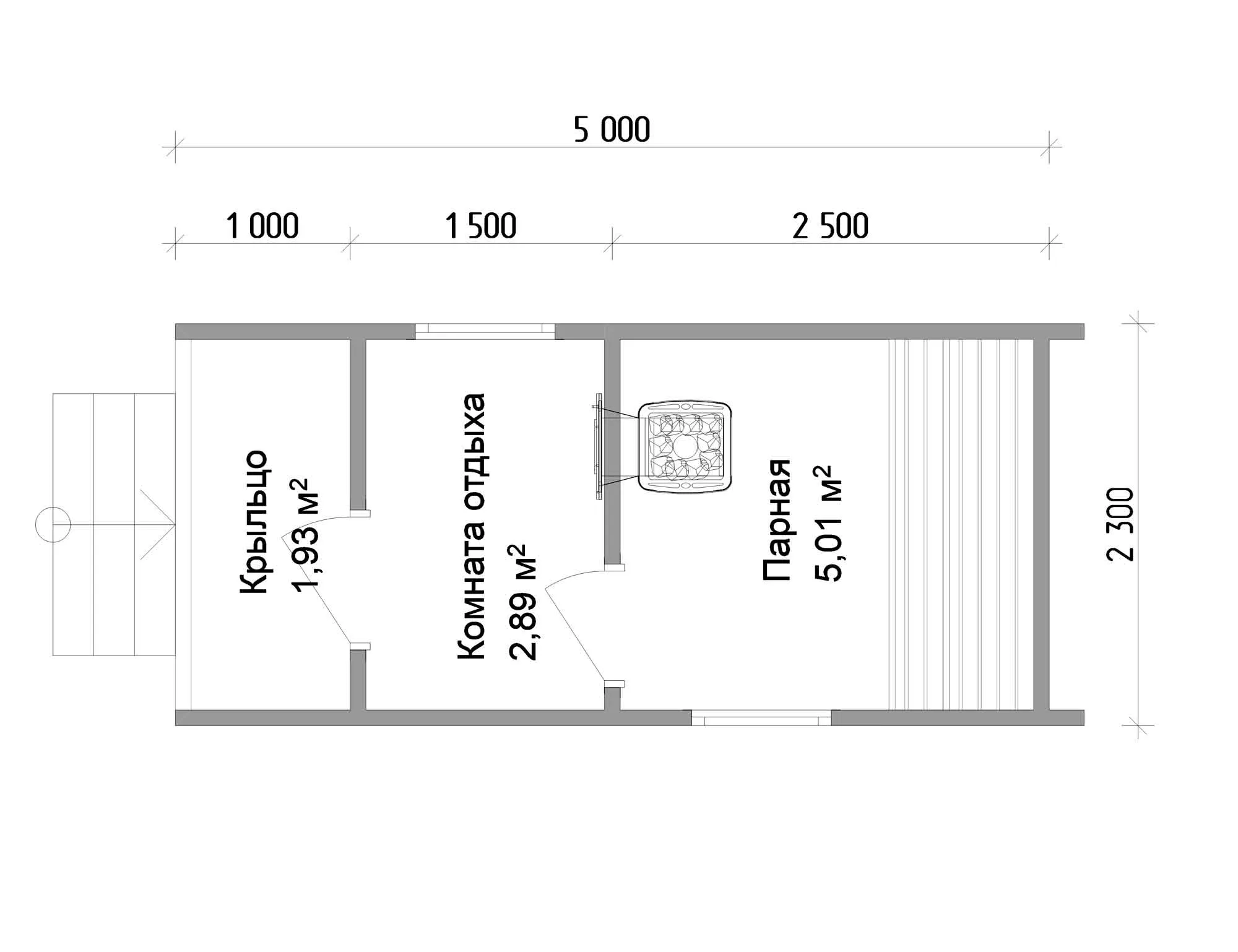 Перевозная каркасная баня в стиле Барн 5,0х2,35х2,311,5